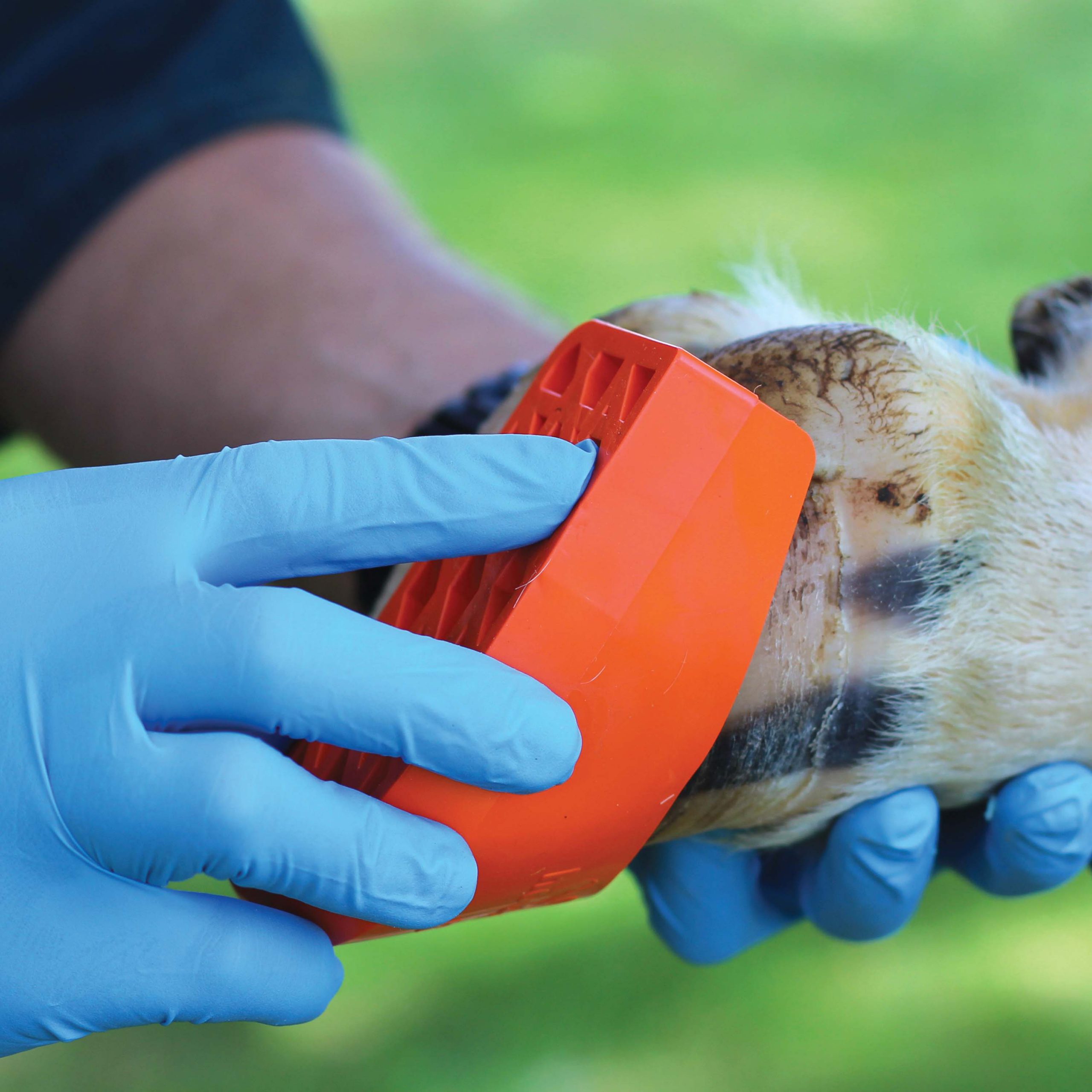 - Fit the Hoofer on to the healthy claw and apply firm hand pressure for at least 30 seconds