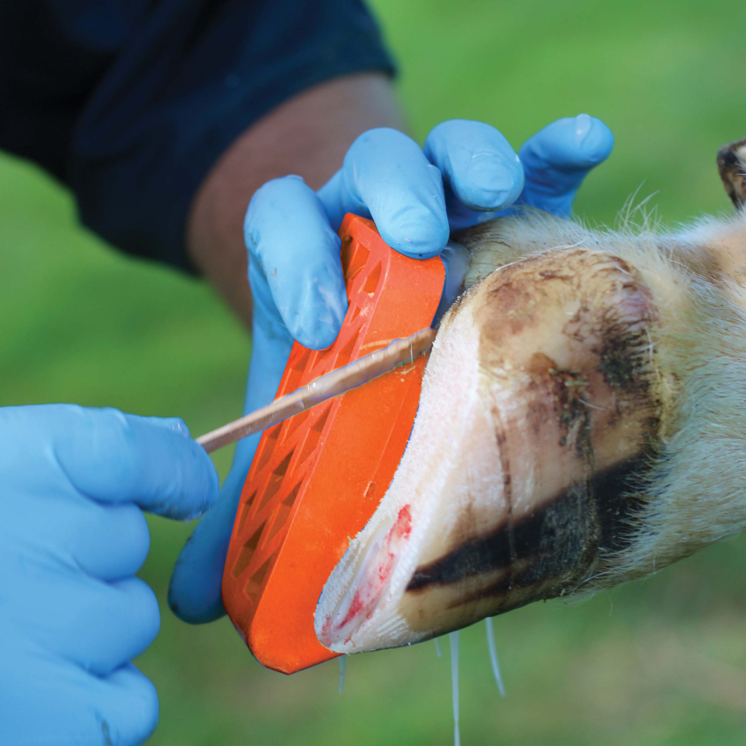 - Prepare healthy claw for Hoofer – trim, scrape clean and thoroughly dry