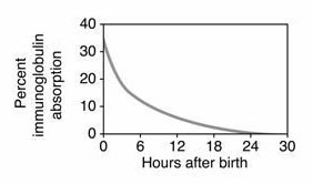 Absorption of the antibodies declines rapidly after birth. Here is a scary graph representing how quickly absorption declines:
