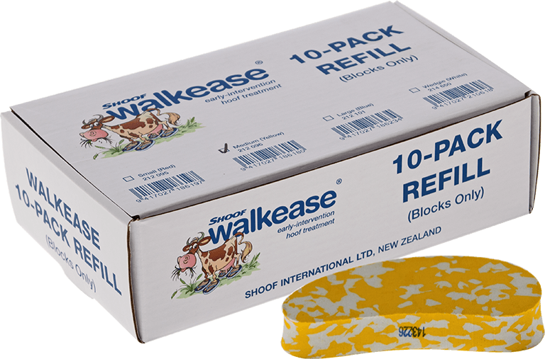 - The hoof sole must be very flat so that when the Walkease block is pressed against it (by hand pressure only) there is the maximum surface contact area possible. With a stand-up crush where the hoof is put down more promptly, the weight of the cow ensures the block conforms to any irregularities of the sole